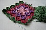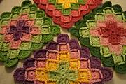 z tego co pamiętam, jak robiła takie cuda moja nieżyjąca teściowa, to każdy kwadracik robisz osobno na szydełku ,a potem łączysz zszywając, lub splatając szydełkiem kolor z kolorem i tak powstaje całość. Napisz do ABY ona jest mistrzynią takich "wyrobów", pewnie ci pomoże.