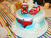 Tort urodzinowy mojego wnuczka Kubusia wykonany przez All. Poza tym, że piękny to jeszcze bardzo smaczny. Nie za słodki (no może poza masą cukrową). Bardzo ciekawe zestawienie smaków jedna z warstw wykonana z pysznych moreli (tak myślę). Dodało to pikanterii smakowej. Gościom bardzo smakował. Zjedzony w całości.