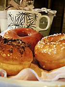 Obiecane Młodym do szkoły pączki. Tami lukrowała, Tusia osączała z tłuszczu, ja smażyłam... najszybciej zrobione i najlepsze pączki, jakie zrobiłyśmy! A Ryś wspaniałomyślnie spał. :)