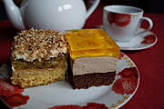 Ciasto marchewkowe z lukrem pomarańczowym i ciasto czekoladowe z czekoladową śmietaną