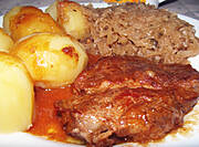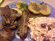 Dzisiaj: żeberka z rozmarynem i cebulą, ziemniaki i pekinka z chrzanem.