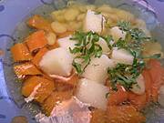 Zupa z suszonych grzybów leśnych, grillowany łosoś, ryż, marchewka.