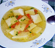 Wczoraj - rosół z ptaków różnych z fasolą i kaszą manną w kostkę. Dziękuję, Mamo - Różyczki.