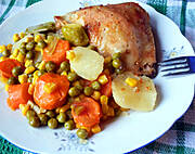 Kurak pieczony z ziemniaczkami, kalafiorem i brokułem gotowanym