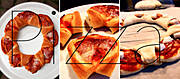 Środek ciasta nie jest posmarowany sosem, pocięłam go na 8 części, każdą zawinęłam na zewnątrz, pod spód ciasta (3 zdj), posmarowałam wodą z odrobiną cukru.