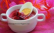 Barszcze czerwony zabielany z ziemniakami, na drugie wczorajsza zapiekanka MR, do picia sok z pomarańczy.