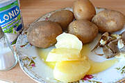 męża, z racji choroby, ziemniaki w mundurkach z masłem i solą, jogurt