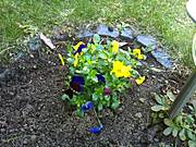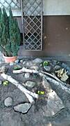 Przyszłam ze zdjęciami.....rano wpadłam na pomysł,żeby sobie z przodu,od strony wejścia do domu zmontować kopczyko/ skalniak.....na razie kamole mi się skończyły....ale bratki już są....na zdjęciu straszy kratka na pnącza,ale postaram się ją odmalować(może w tygodniu) i wstawię nowe focie....Kopczyko/ skalniak machnęłam w dwie godzinki...ziemię woziłam w kuble na papier,heh...i takich kubłów przewiozłam 6.....