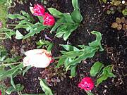 Piękne tulipanki u mnie się jeszcze nie rozkwitły wszystkie. A tak za tym rododendronem to co to za biały tulipanek? :)Też czekam na swoje różaneczniki mam 5.