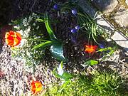 Są też pierwsze kwiatki niezapominajek i roślinek skalnych.