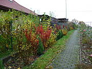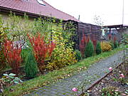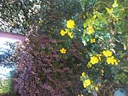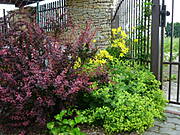 A przy bramce przywrotnik całkiem splątał się z berberysem