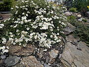 Mam pięciornika od czterech lat. Teraz siega mi do kolan, ale bardzo mocno go tnę po kwitnieniu, ponieważ zalezy mi na okrągłej, gestej kulce. Kwitnie własciwie przez trzy miesiące, od lipca do września.