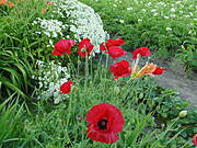 Mój niewielki ogród podzieliłam na 3 strefy ...jedna z kwiatkami różowo-białymi ,druga tylko czerwone i trzecia wszystkie kolory ...
