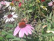 Wczoraj po pracy zakasałam rękawy i wzięłam się za prace ogrodowe. Przesadzałam poziomki i na miejscu po nich posadziłam trawę. Ewa zainspirował mnie Twój kącik, ja mam taką belkę drewna na której sobie siedzę, odsunęłam ją od płotu i za nią posadziłam rubekię i Floksy. :) Choć taki mały kącik będzie:) Wyrwałam ze 100 wiader trawy i dochodzę do wniosku, że zaczynam mieć problem z kompostem, którego tyle nie potrzebuję, a on ciągle rośnie. Dziś ledwo co ruszam rękami, nogi mnie bola od łopaty i coś jeszcze...,a pracy w ogrodzie jeszcze wiele. Muszę porządek za malinami zrobić w centrum ogrodu posadzić kwiatki i wypielić. Cieszy mnie bo borówka amerykańska w tym roku u mnie obrodziła, że ho, ho.Chciałam kupić nasiona tytoniu ozdobnego, ale nigdzie nie mogę dostać.Aaa kupiłam jeszcze nasturcję i groszek pnący też muszę przygotować teren pod posadzenie. Ach... tylko szkoda, że czasu tak mało.