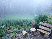 Uwielbiam mgłę :) Twój ogród z nią wygląda przepięknie ....a lawendowy kącik jest przeuroczy :)))...
