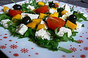 Rukola,mango,ser,oliwka,pomidor + oliwa...