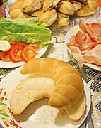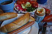 Jajko na miękko,parówka ,słowackie rohliki + warzywa ...