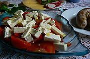 Pomidory z fetą,biała kiełbasa z przysmażoną cebulką + parę dodatków...