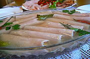 Roladki z szynki,jajek i chrzanu w galarecie,pasta z łososia i jajek i parę innych dodatków...