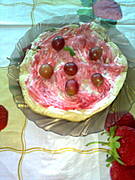 omlet z sosem truskawkowym i winogrona