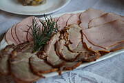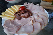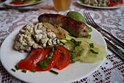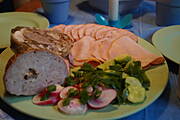 Galaretka z kurczaka z sosem chrzanowym,wędliny,warzywa + pieczywo i herbata ...