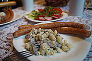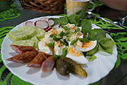 Sałatka z pieczarek i jajek ,biała kiełbasa z cebulką + dodatki ...