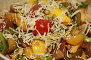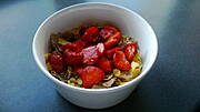 Sałatka z pomidorków ( praktycznie ostatnich tarasowych zbiorów ), z pestkami dyni i serem bursztyn....:))