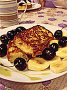 Tosty francuskie, kawa z mlekiem.