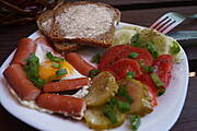 Jajko sadzone na parówce,pomidor i ogórki ...