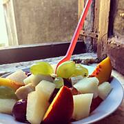 Kasza jaglana z owocami i mleczkiem sojowym, koktajl z arbuza, banana, kiwi i jabłek :)