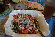 Dla jednych sałatka z rukoli,fety,pomidorów i pomidorów suszonych ,dla drugich śledź w śmietanie z cebulką i jabłkiem + pieczywo ...