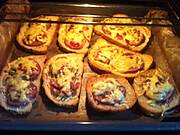 Pizzerki, zapiekane bułeczki i chlebki z szynką, ogonówką, kiełbasą szynkową, kiełbasą swojską, salami, ketchupem i żółtym serem, herbata zielona :)