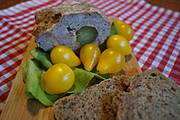 Świeżono upieczony pasztet z kurczaka i pieczarek ,pieczywo i sałatka z pomidorów ...