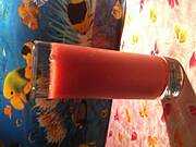 Koktajl truskawkowo-bananowy, naleśniki z dżem truskawkowym :)