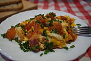 Jajecznica z szynką i pomidorami + pieczywo ...