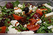 Sałatka do pracy ...rukola,oliwki,pomidory suszone,pomidory koktajlowe,winogrona,ser typu włoskiego i sos balsamiczny ...