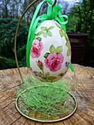 Zrobiłam kilka pisanek decoupage z kurzych jajek, ale powieszę je w same święta. Może ze dwa dni dadzą radę ;)