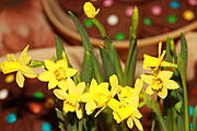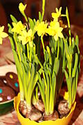 Iwcia, widzę, że przyszłam w samą porę - w kominku ogień strzela, kawa z ekspresu czaruje aromatem więc czego chcieć więcej w taką aurę. U mnie też pada. na dodatek wieje i zimno. Jeeeeeny, żeby tylko na święta słońce wyszło. Zawsze Wielkanoc przywodzi na myśl wiosnę a tu taka bura jesień za oknem. Twoje kwiatki są jak łowicka kraszanka - prześliczne i radosne.