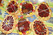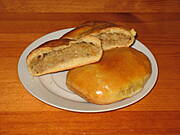 Super te orzeszki! Może i ja pokuszę się takie zrobić :) W środku masa - krem orzechowy? Jadłam takie dawno temu :) Tymczasem częstuję pleśniakiem, w tym roku jeszcze nie piekłam, więc smakuje nam podwójnie dobrze :) Z dżemem z czarnej porzeczki i pestkowanymi wisionkami, w pianie budyń śmietankowy... Dla matani, niech choć popatrzy, bidulka :)