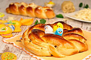 Dojadamy drożdżową rozetę z powidłami śliwkowymi.