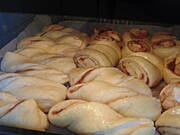 Ja nie planowałam wypieków, ale przez swoją ślepotę znalazłam robotę: zamiast bigosu wyjęłam z zamrażarki pigwę (kolor mają zbliżony), więc nocką napiekłam rogalików (albo coś na kształt rogalika). Resztą może obsmaruję mazurki, albo skusi mnie pleśniak wyżej omawiany (uwielbiam go).