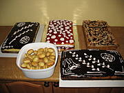 Nasze świąteczne słodkości, makowiec z jabłkami,serowiec z bakaliami, sernik z budyniem ( tym razem z malinowym) i 3BIT , dodatkowo orzeszki i słodkie ciasteczkowe pisanki:)