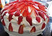 Z żurawiną też dobrze wyglada, tylko tę bardziej wybarwioną użyj, nie mniej jednak truskawki będą super. Proponuję też zatopić w śmietanie jakieś owoce, na pewno podniosą smakowitość ciasta.