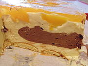 Masa serowa na bazie żelatyny z mlekiem , galaretka tylko z brzoskwiniami na wierzchu ..