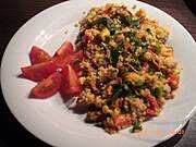 2. Na zimno tez na bazie ryzu lub kaszy mozna dodac kukurydze z puszki, ogorki konserwowe, szczypiorek, seler naciowy, papryke, groszek i co tam jeszcze lubisz i calosc mozna doprawic ziolami i ulubionym sosem np. czosnkowym lub majonezem.