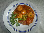 Zupa pomidorowa z ryżem,na drugie-pulpety w sosie pieczarkowym, młode ziemniaki z koperkiem i ogórek małosolny.