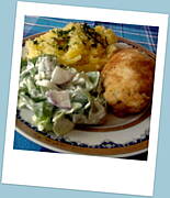 Wczoraj ...ziemniaki,kurczak w mleku,mizeria z rzodkiewki i ogórka ...