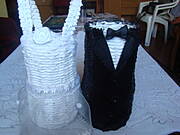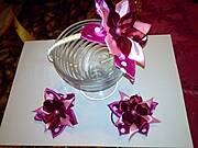 kwiatki są zrobione ze wstązek a oslonki na butelki sa z papierowej wikliny