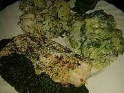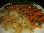 Duszony schab w sosie czosnkowym ,ziemniaki i surówka z pora,jabłka i marchewki ..