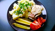 Jak to ?? chleb z ziemniakami?Wczoraj i dziś węgierska zupa wg praliny (pychotka!), dla połówka dodatkowo żeberka w kiszonej kapuście z piekarnika (co się dusiły ponad 3 godziny...) z ziemniakami.